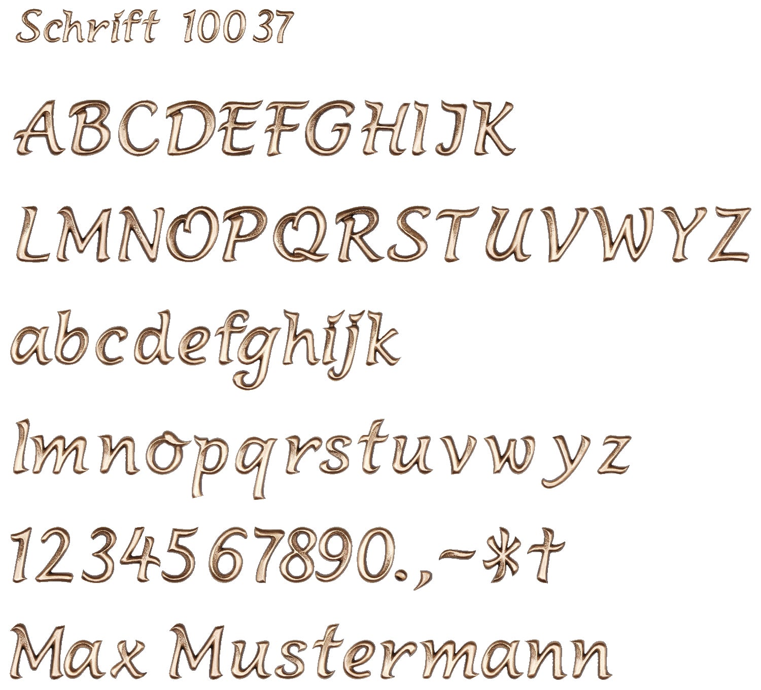 Mit diesen zeitlos schönen Schriftzeichen gestalten Sie persönliche und würdevolle Inschriften, die Generationen überdauern.
